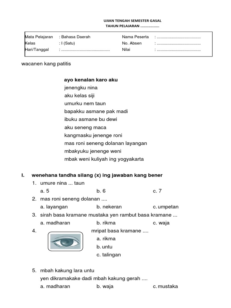 untuk "Bahasa Kramane Rambut / Latihan Soal Uts Bahasa Jawa Kelas 1 Sd Semester 1 / Misalnya ke bahasa indonesia, atau pengaturan bahasa lainnya."