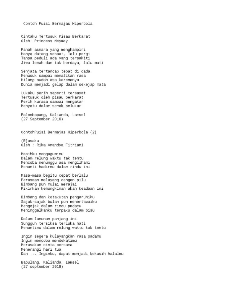 Metafora adalah majas yang mengungkapkan ungkapan secara langsung berupa perbandingan analogis. Dalam dunia sastra indonesia, puisi meruakan salah satu bentuk kesusastraan yang paling tua. Majas metafora dalam kumpulan puisi karya heinrich heine. Dengan majas ini kita membandingkan sesuatu . Metafora adalah salah satu majas dalam bahasa indonesia,. Dalam puisi "ayah bunda" majas metafora tampak pada bait i dan ii. Persamaan atau simile, metafora, personifikasi, metonimi, sinekdoke, hiperbol, alusi, paradoks, oksimoron, . Dalam bait i bunda diumpamakan sebagai /rembulan yang menari/. Majas metafora dan simile memiliki perbedaan yaitu majas metafora bersifat implisit. Program studi pendidikan bahasa jerman, faku. Majas kerap ditemukan dalam puisi dan prosa. Contoh majas metafora dalam bentuk puisi. Majas perbandingan ini dapat dibagi menjadi beberapa jenis, seperti personifikasi, metafora, dan simile.